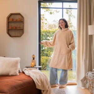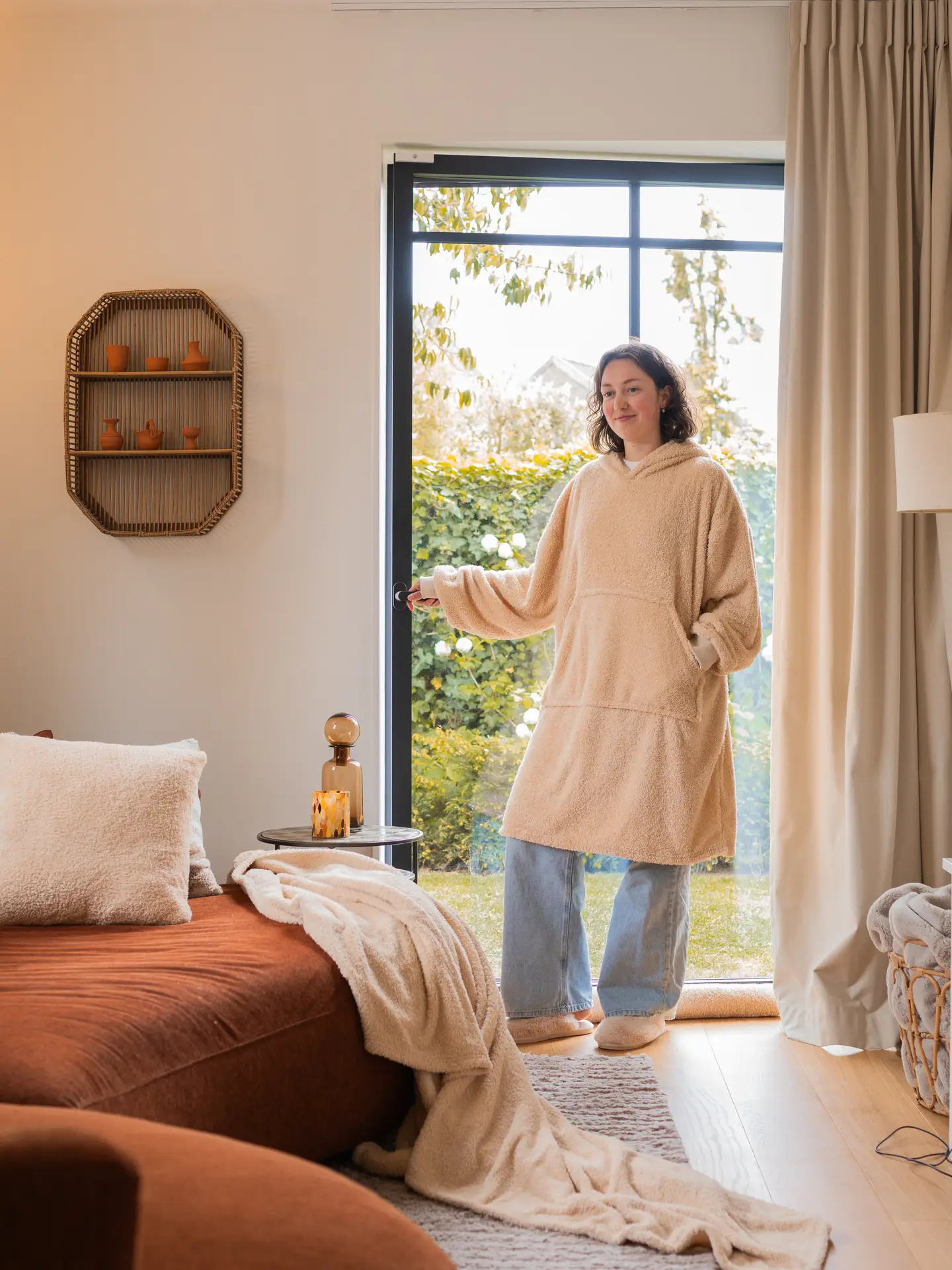 Deze ultra-zachte hoodie wordt al snel je favoriet voor gezellige avonden thuis. Met zijn relaxte pasvorm, grote voorzak en warme capuchon is hij zowel super comfortabel als praktisch. Perfect om in weg te kruipen tijdens een filmavond of om warm te blijven op koude dagen. Combineer het met het bijpassende plaid en de kussens voor de ultieme gezellige look!