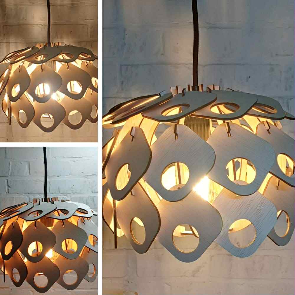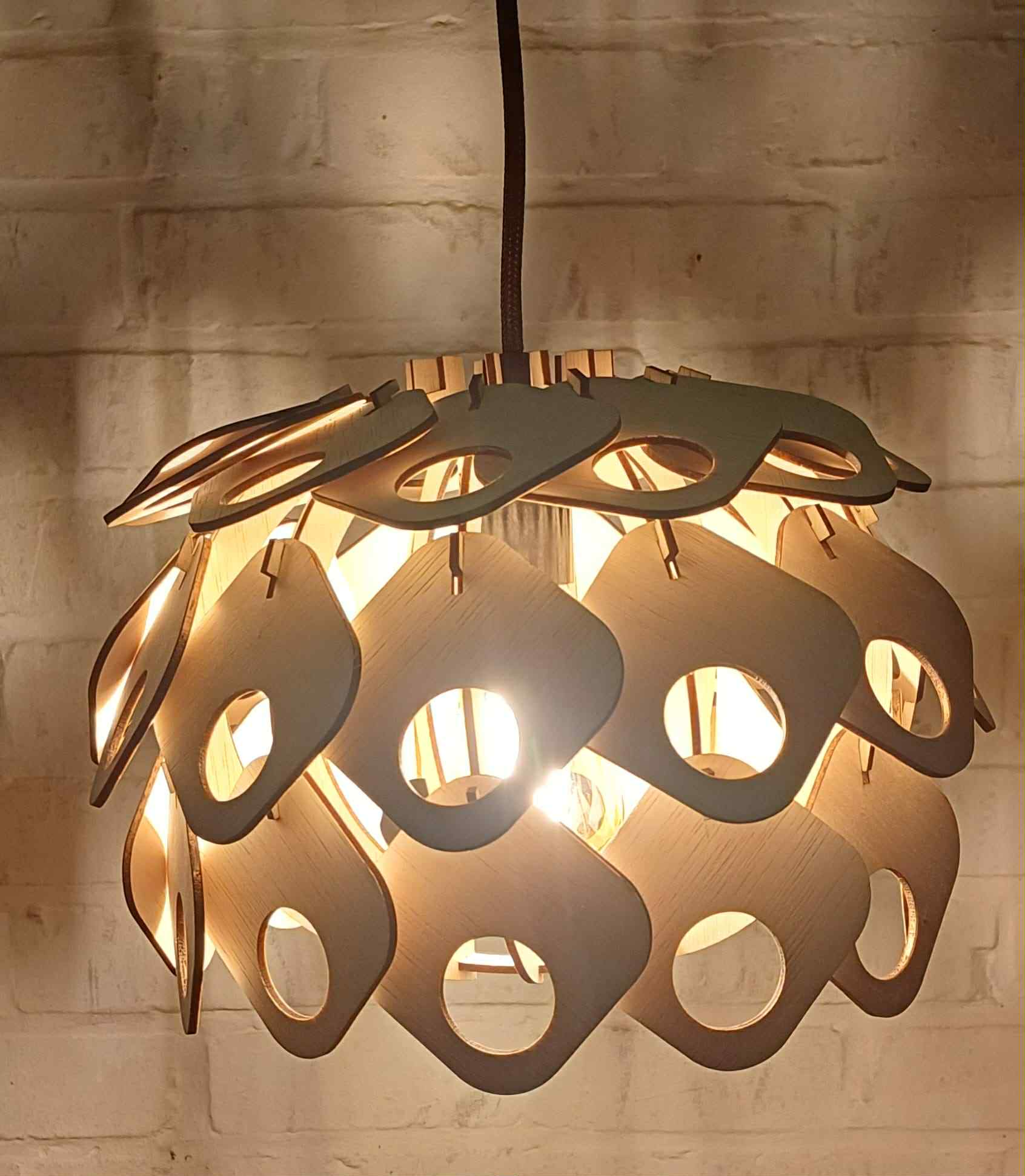 Een mooie sfeervolle lamp in hout, kan naar eigen wens aangepast worden.