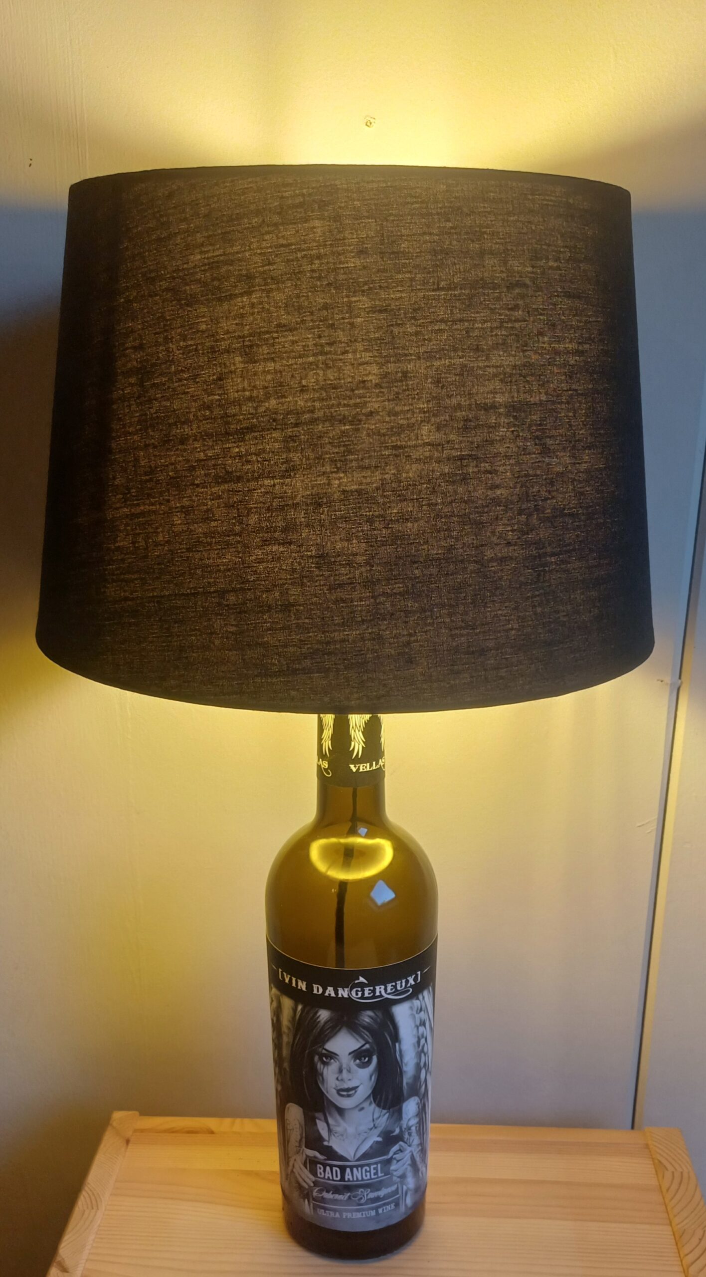 Kom langs en we herwerken deze tot lamp, de prijs is voor werk en materiaal. De fles aangeleverd door de klant de lampenkap kan in samenspraak gekozen worden.